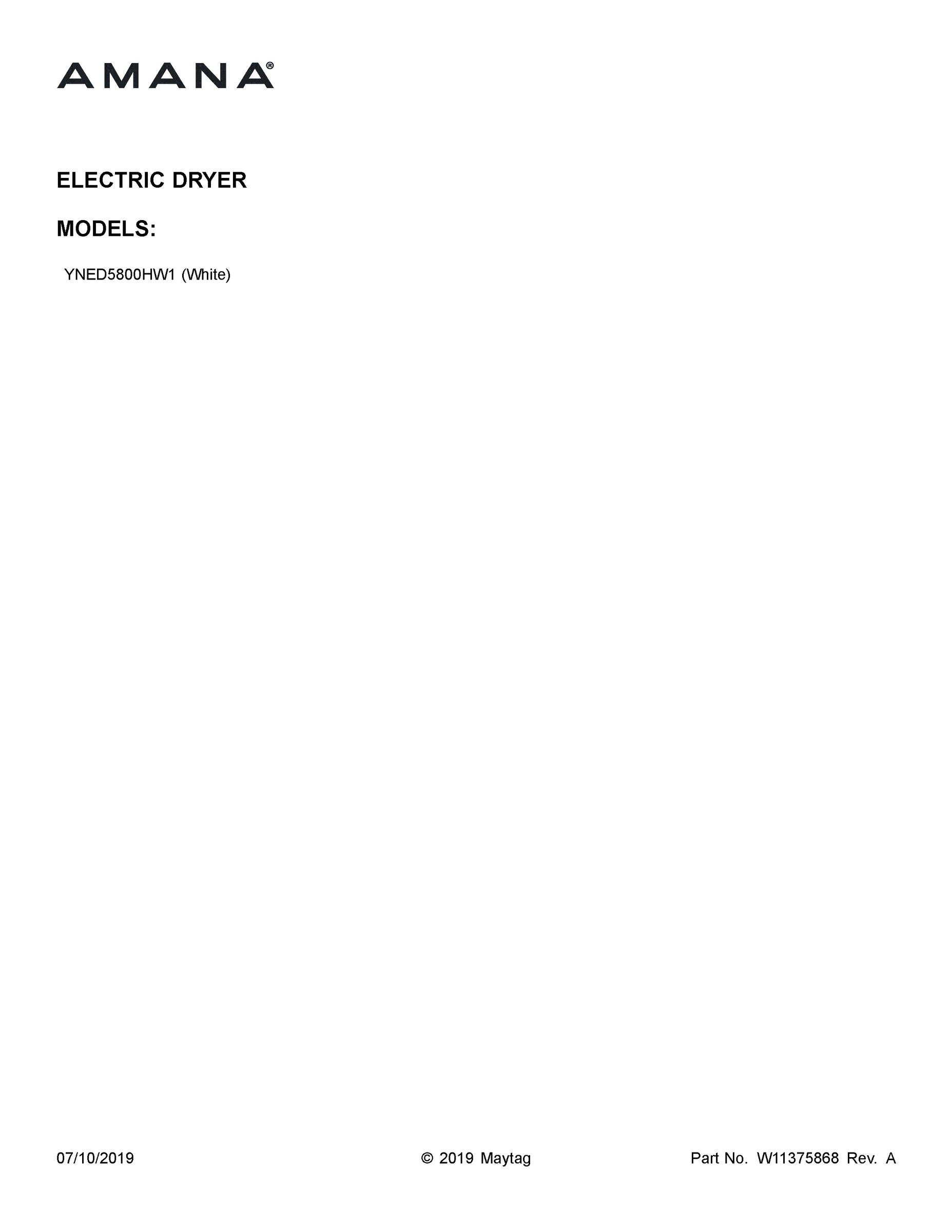 Model Maytag YNED5800HW1 LAUNDRY, RESIDENTIAL, ELECTRIC DRYER – Common Parts & Diagrams