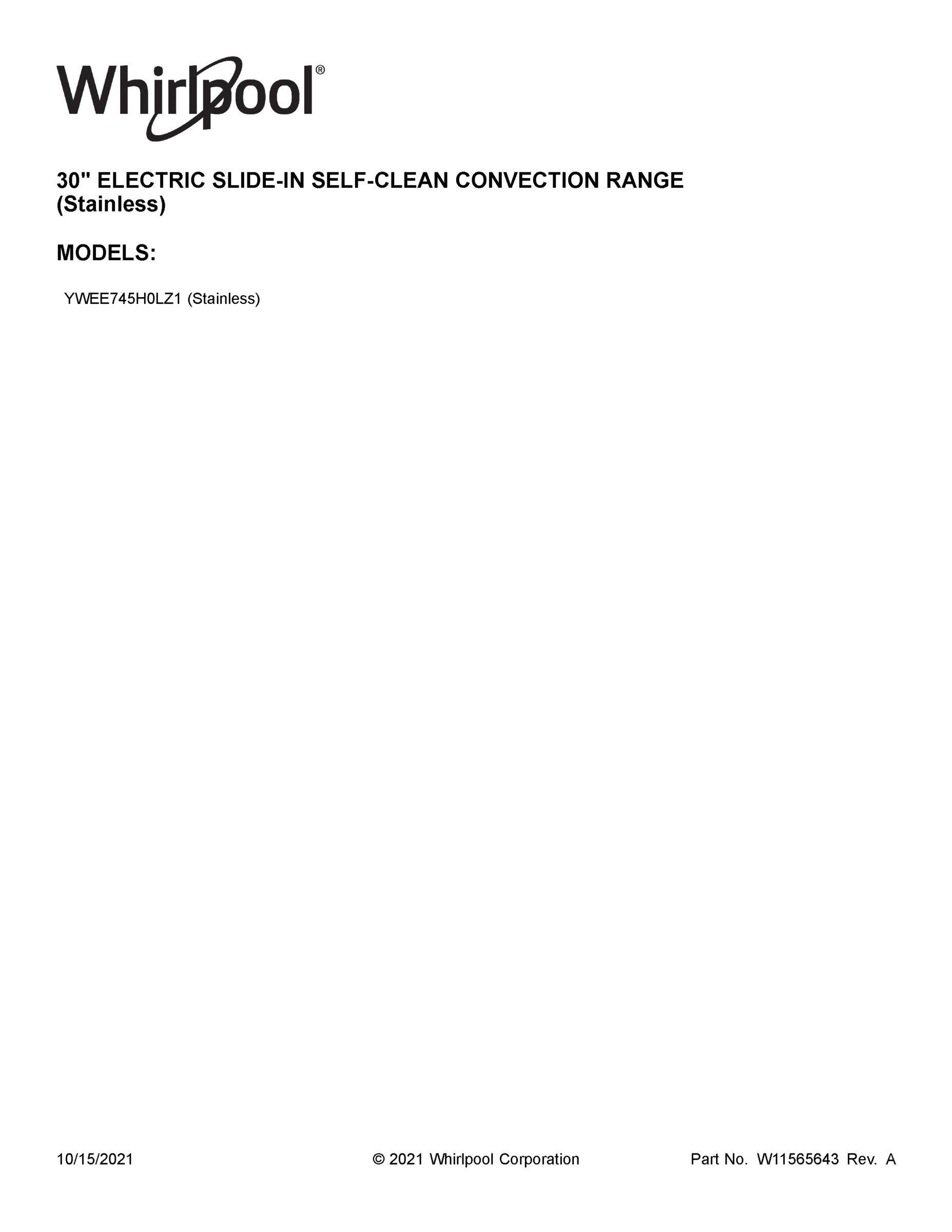 Model Whirlpool YWEE745H0LZ1 RANGE/OVEN, ELECTRIC, SLIDE-IN, 30 INCH – Common Parts & Diagrams